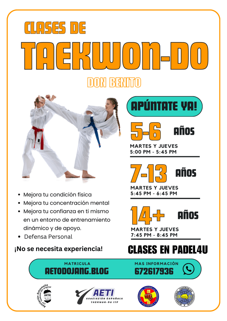 Nuestra asociación AETO presenta nuestro horario para las clases de Taekwon-do en Don Benito para el nuevo curso, que comenzarán el próximo día 17 de septiembre.