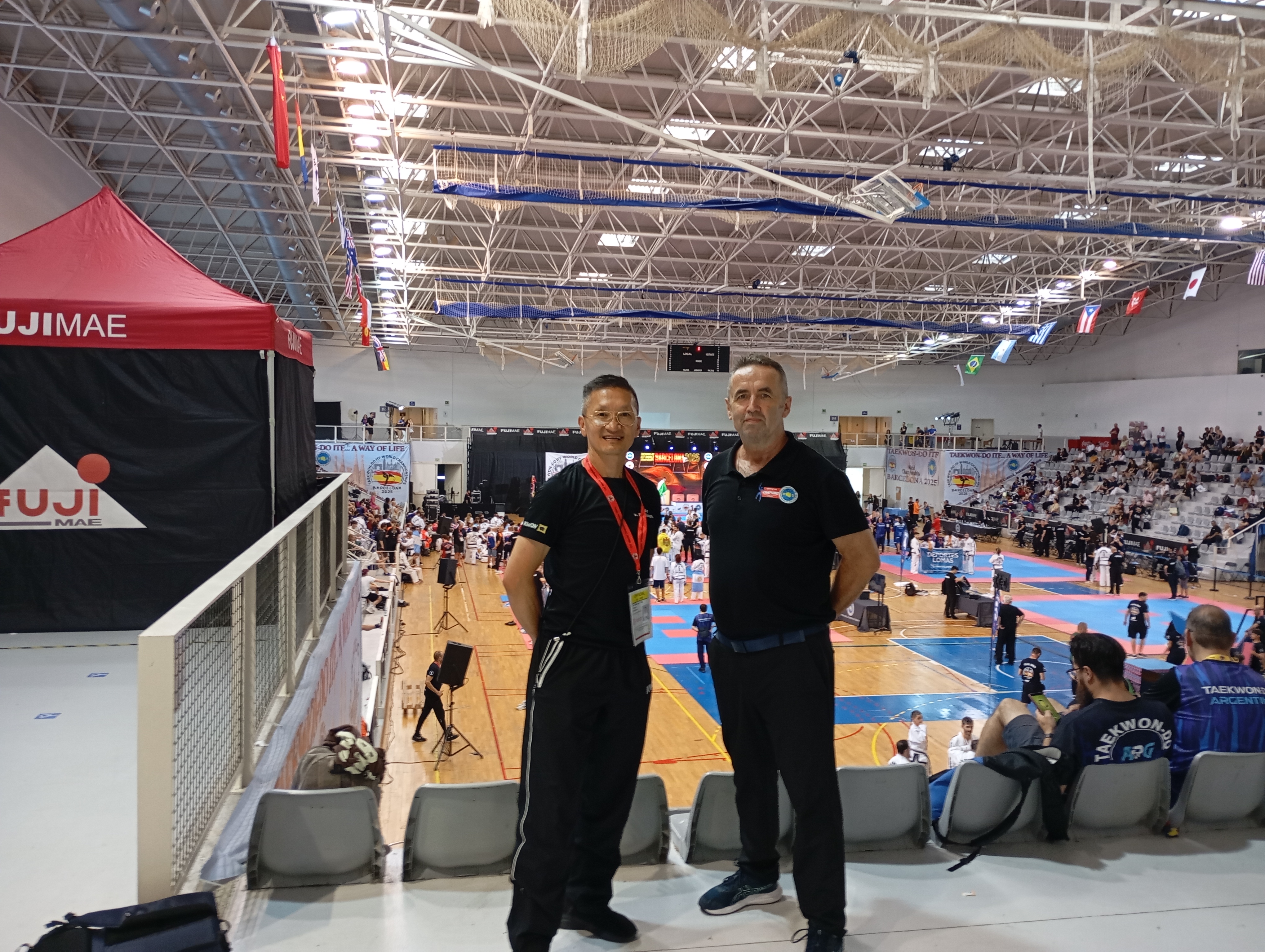 Quiero hacer una mención especial a mi hijo Alejandro, cinturón negro junior, quien se ofreció como voluntario para trabajar como parte del equipo de organización durante los tres primeros días del campeonato. Su profesionalismo, entusiasmo y compromiso con los demás reflejan las mejores cualidades de un joven Taekwondista. Su contribución fue muy valorada por los organizadores del evento y ejemplificó el espíritu de servicio y trabajo en equipo que buscamos inculcar en todos los estudiantes.