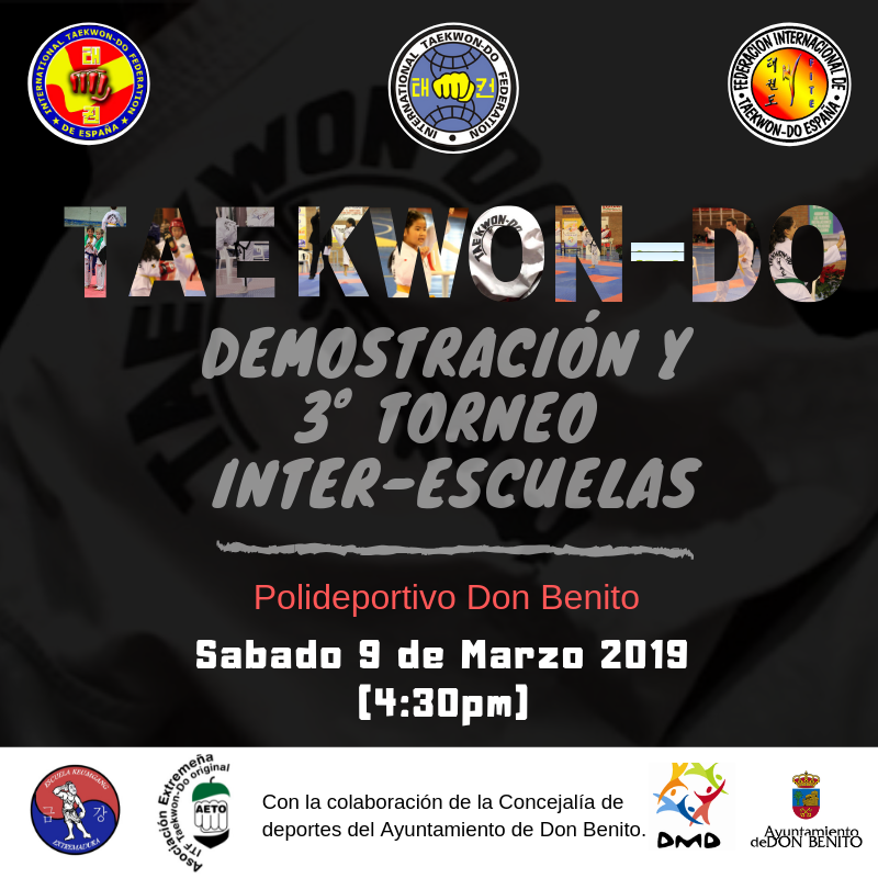 Estamos orgullosos de anunciar que nuestro próximo evento será en Don Benito. Este será nuestro tercer torneo Inter-Escuela y la segunda competición entre AETO Don Benito y la Escuela Keumgang de Navaconcejo. También habrá una demostración de cinturones negros.
